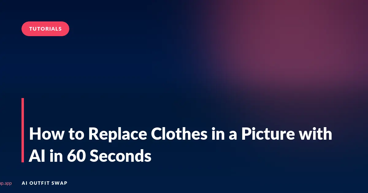 One minute. That's all it takes in 2026 to replace the clothes in a picture with AI. No Photoshop, no desktop software, no tutorial rabbit hole. If you have a phone and a photo, you have everything you need. This guide is a stopwatch-style walkthrough: sixty seconds broken into six ten-second steps, with a note on what to do if a step takes longer. By the end you will have a finished outfit swap saved to your camera roll and ready to share.